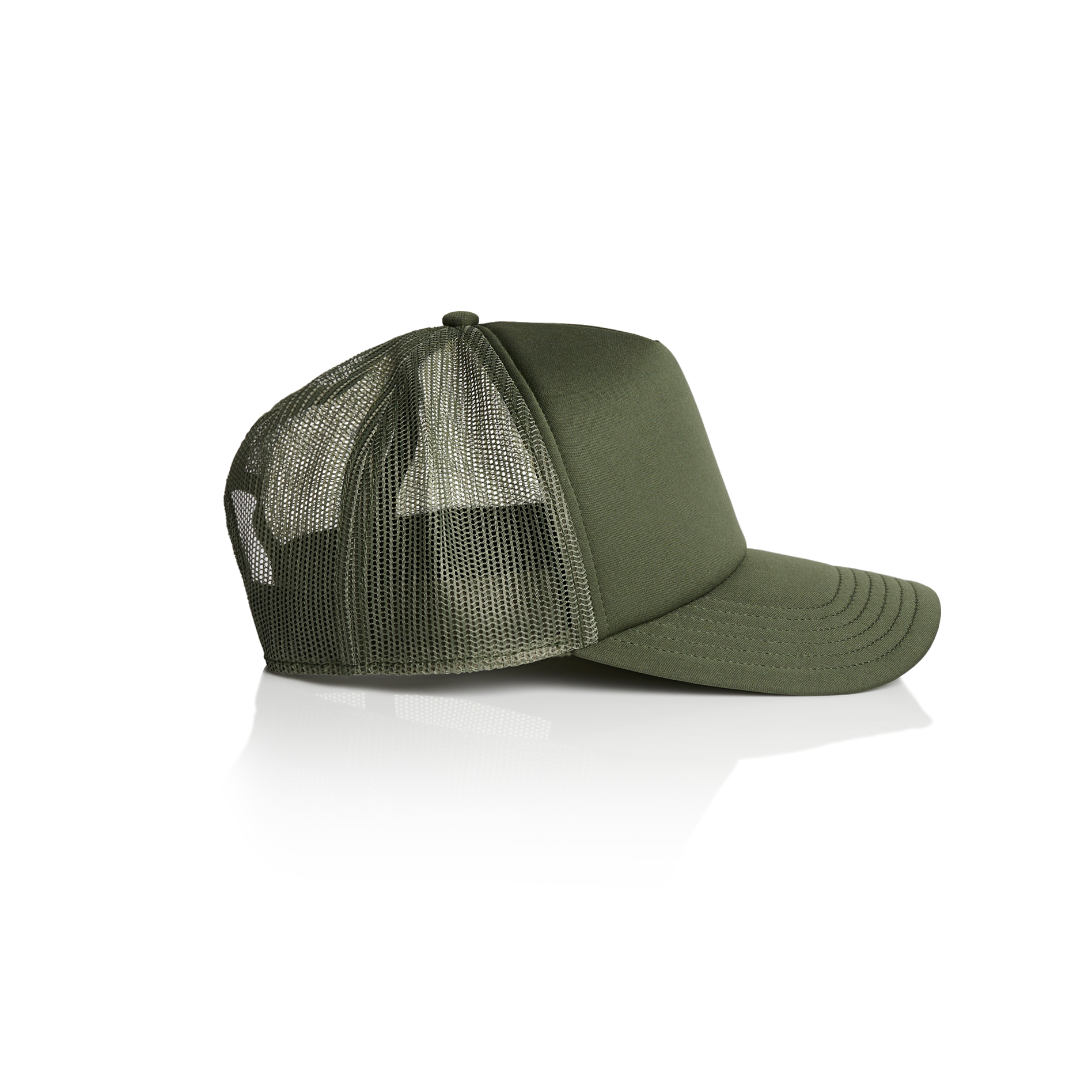 100% polyester foam front and peak, 100% Recycled polyester mesh back